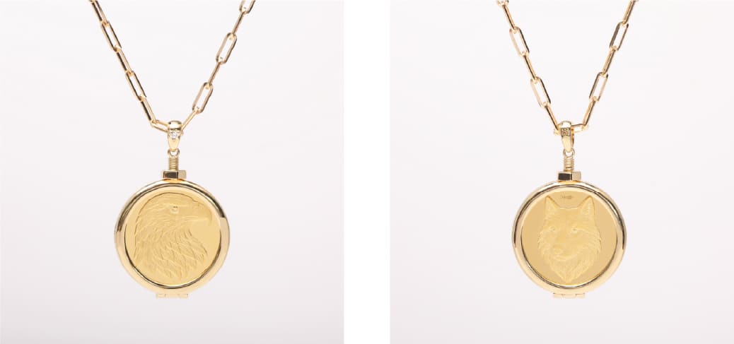 男性に人気のモチーフデザインである動物モチーフ「狼」と「鷹」表裏に表現しました。愛される「狼」は昔から勇敢で仲間思いの存在」として語られることもあります。勇敢な「鷹」はギリシャ神話:ゼウスの使い鷹は天空神ゼウスの従者とされ、神の意志を伝える聖なる鳥と考えられました。